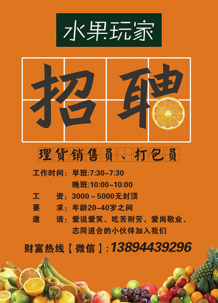 水果玩家水果店 诚聘做饭阿姨