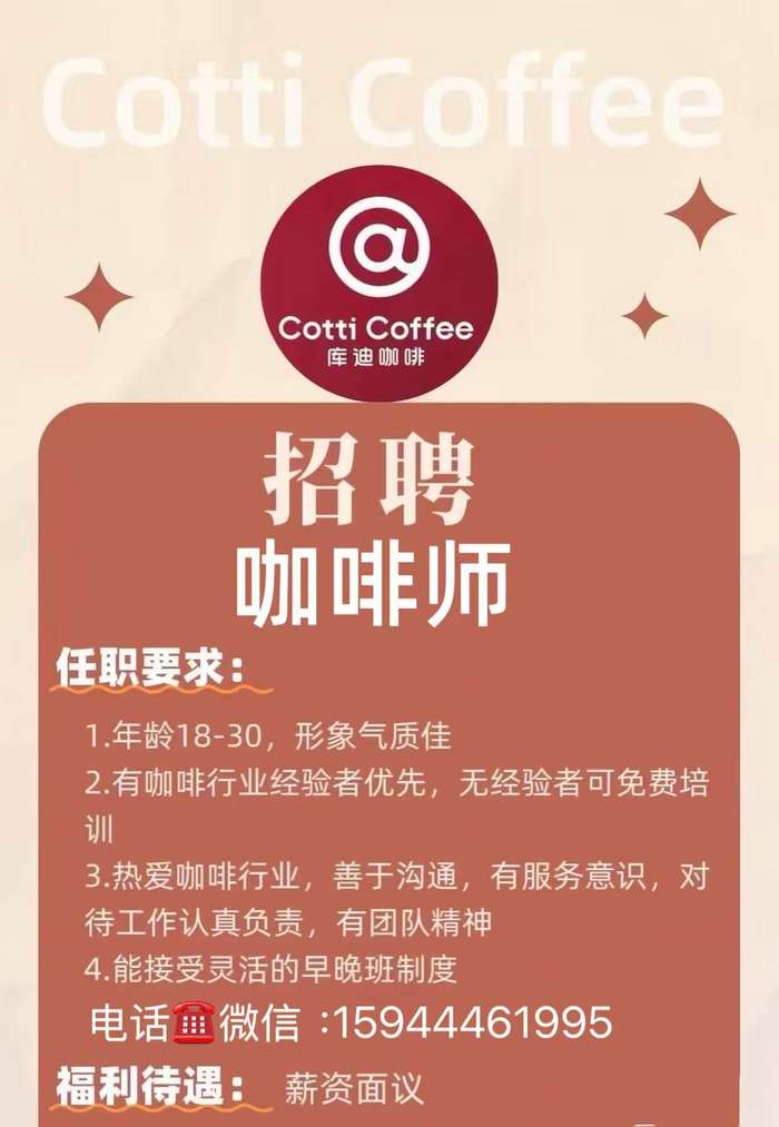 库迪咖啡招聘咖啡师